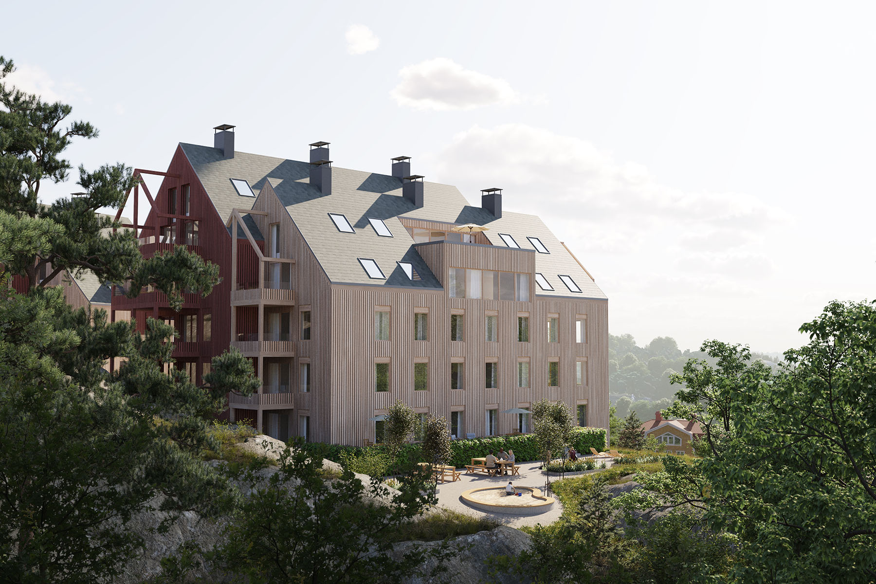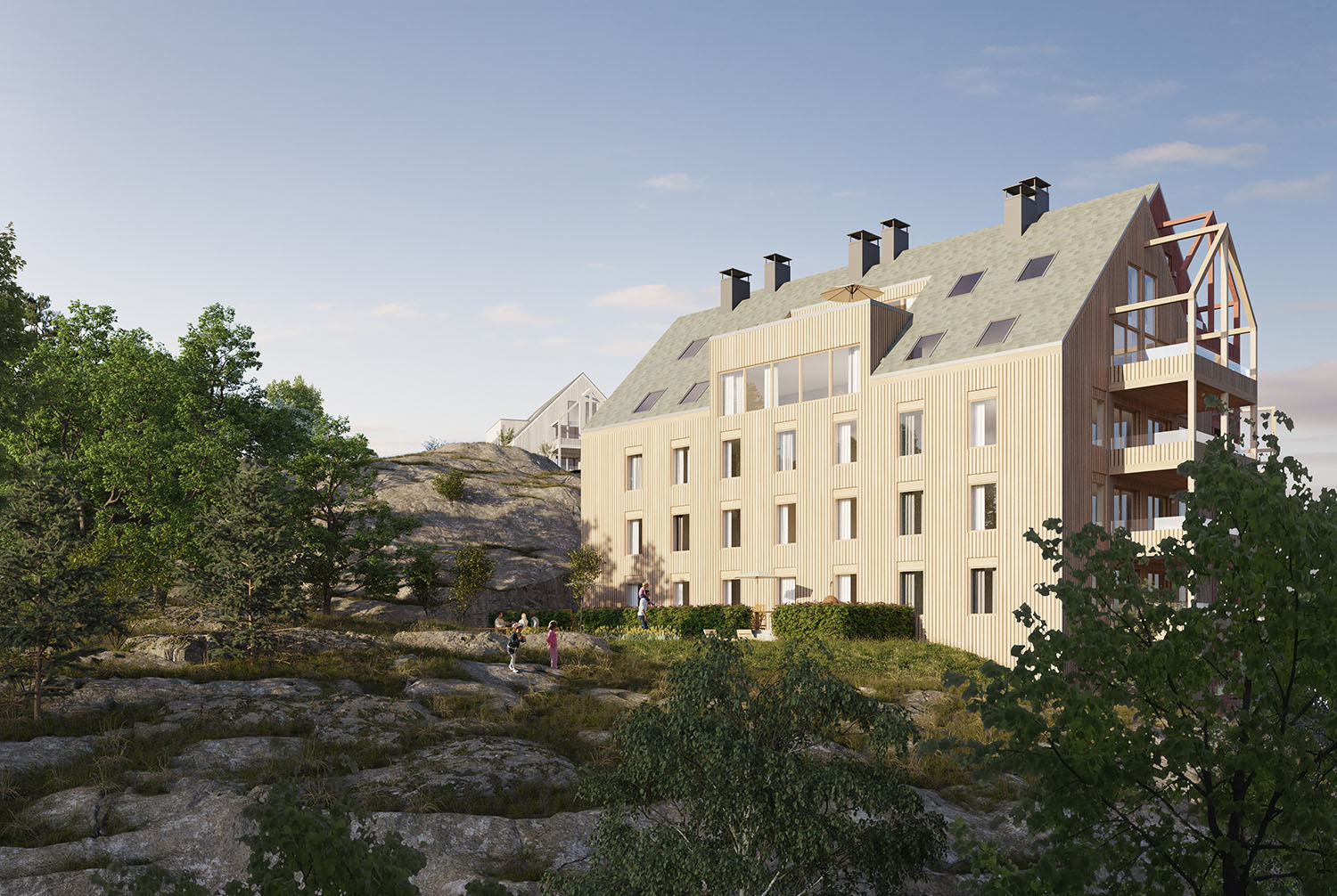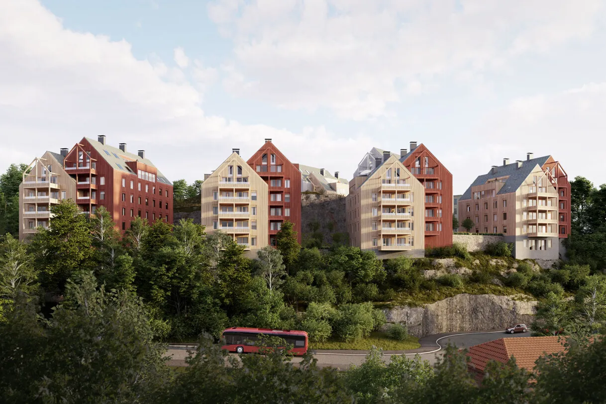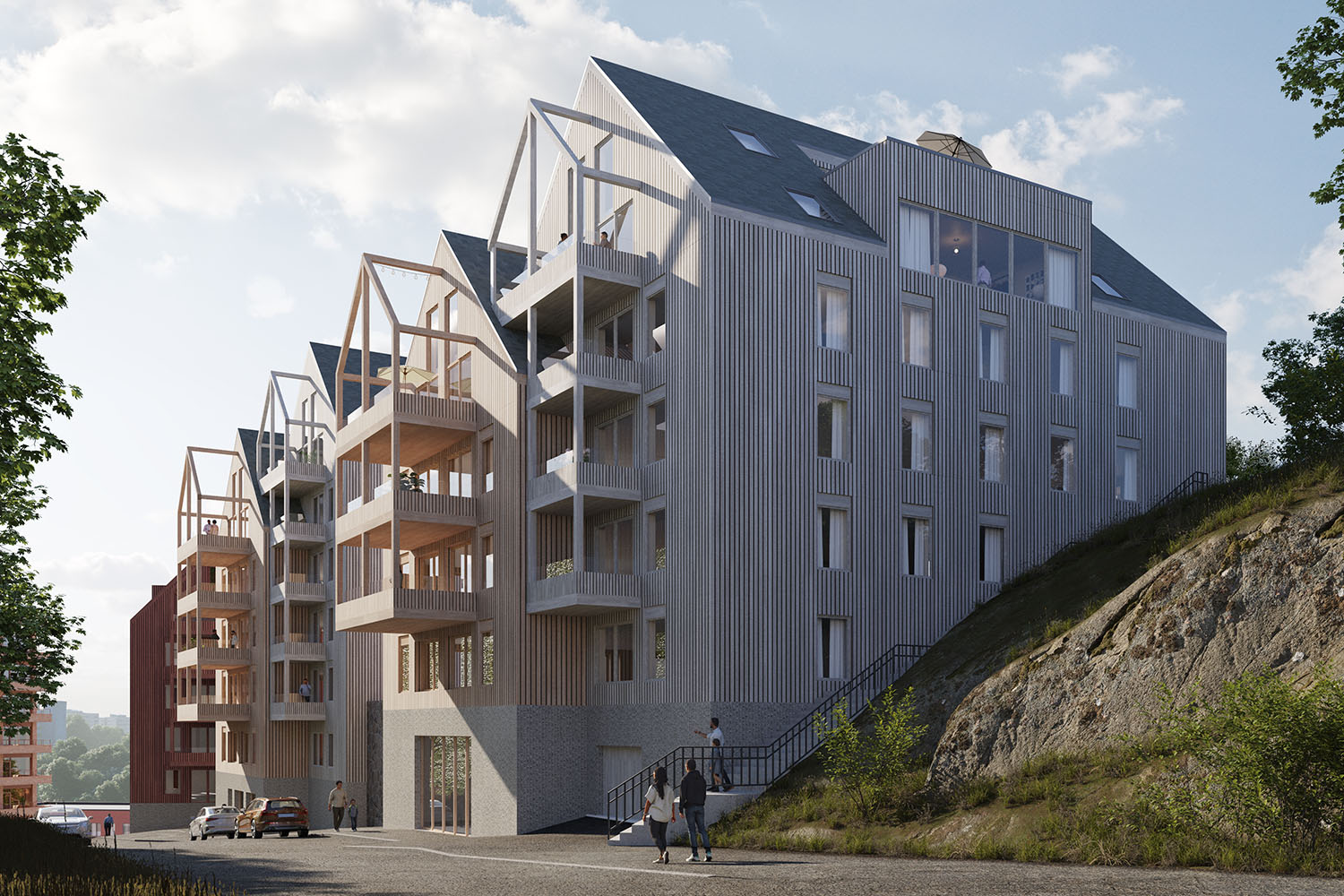 Husen är placerade med gavlar mot omgivande gator och i suterrängläge tvärs berget. Balkonger är främst placerade på gavlarna vilket accentuerar gavelmotivet och tillvaratar de fina utblicksmöjligheterna i söder och norr. Takfönster och takterrasser ger ett livligt och variationsrikt taklandskap. Takets gestaltning ger bebyggelsen en egen variationsrik och rytmisk karaktär med en toppig siluett som markerar bergets läge i stadsbilden, även på lång sikt.